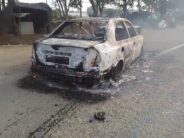 ગણતરીના પળોમાં કાર અગનગોળામાં પરિવર્તિત થઇ