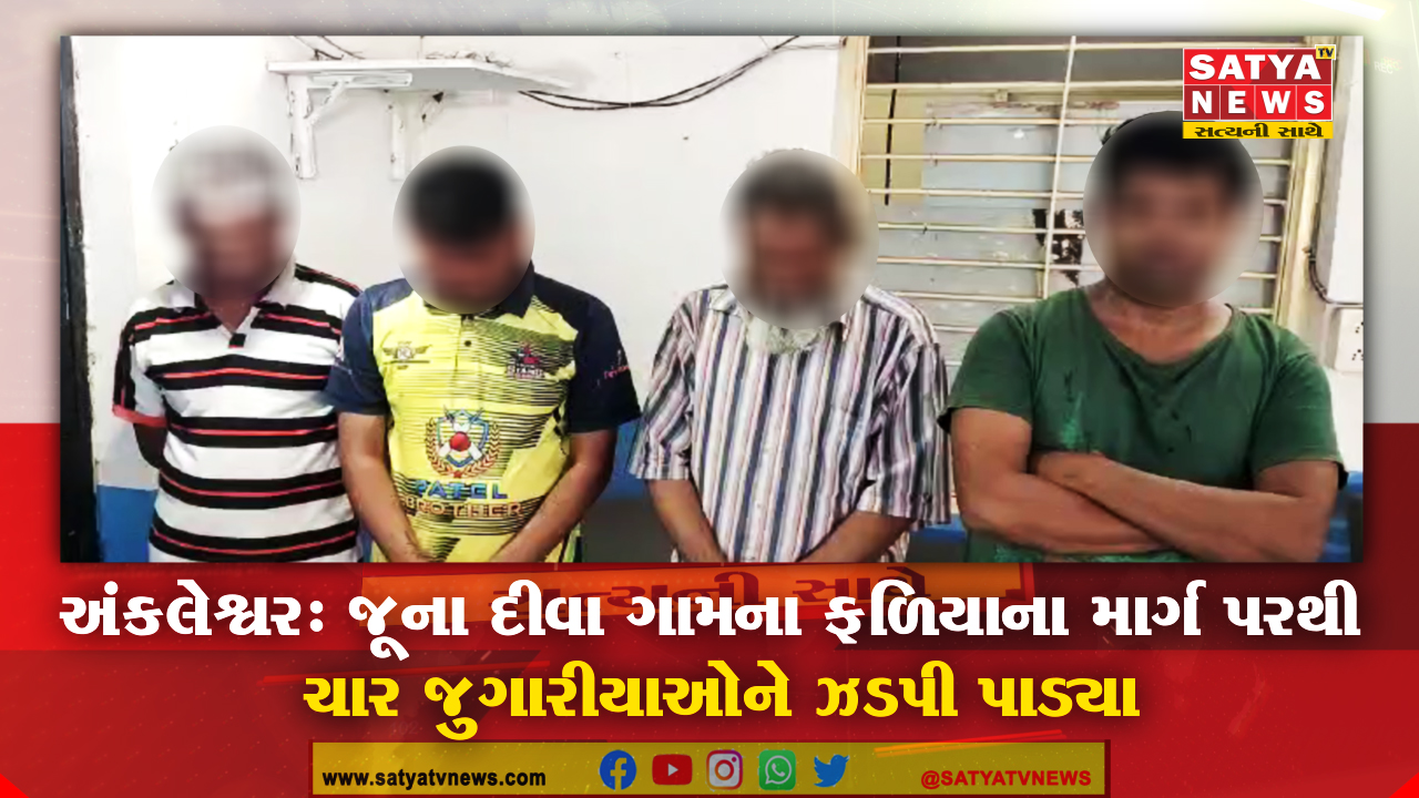 અંકલેશ્વર શહેર એ ડિવિઝન પોલીસે જૂની દીવા ગામના રાઠોડ ફળિયામાં માર્ગ ઉપર જુગાર રમતા ચાર જુગારીયાઓને ઝડપી પાડ્યા હતા