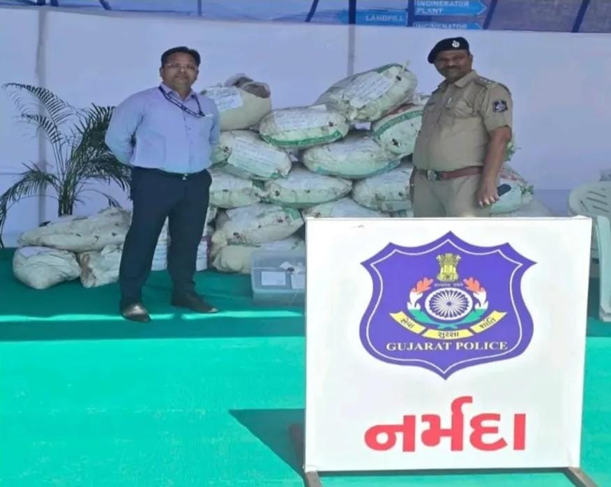 નર્મદા જિલ્લા પોલીસ અધિક્ષક વિશાખા ડબરાલના માર્ગદર્શન હેઠળ નર્મદા જીલ્લાનાં એન.ડી.પી.એસ.ના ગુનાઓમાં પકડાયેલ નાર્કોટીક્સ મુદ્દામાલ નાશ કરવાની પરીણામલક્ષી કામગીરી કરવા આપેલ સુચના આધારે ડ્રગ્સ ડિસ્પોઝલ કમિટી અધ્યક્ષ લોકેશ યાદવ પોલીસ અધિક્ષક, એ.એન.ટી.એફ. સી.આઈ.ડી.ક્રાઈમ ગુજરાત રાજ્ય ગાંધીનગર તથા ડ્રગ્સ ડિસ્પોઝલ કમીટી સભ્યો પી.આર.પટેલ નાયબ પોલીસ અધિક્ષક રાજપીપલા વિભાગ રાજપીપલા જી.નર્મદા તથા વાય.એસ.શિરસાઠ પોલીસ ઇન્સ્પેકટર એસ.ઓ.જી શાખા નર્મદા તથા એસ.ઓ.જી.સ્ટાફના માણસો તથા જીલ્લા પોલીસ માણસો દ્વારા ગૃહમંત્રી હર્ષ સંઘવીની ઉપસ્થિતિમાં તા.૦૩/૧૦/૨૦૨૫ ના રોજ ભરુચ એન્વાયરો ઇન્ફ્રાસ્ટ્રકચર લીમીટેડ, (BEIL) પ્લોટ નં.ડી/૪૩ જી.આઇ.ડી.સી. એસ્ટેટ, આમોદ રોડ, દહેજ જી.ભરૂચ કંપની ખાતે એન.ડી.પી.એસ. ના કુલ-૧૦ ગુનાઓમાં પકડાયેલ ગાંજો કુલ ૬૮૨ કિલો ૭૫૫ ગ્રામ કિંમત રૂ.૬૮,૨૯,૫૫૦/- નો નાર્કોટીક્સ મુદ્દામાલ કાયદેસર કાર્યવાહી કરી નાશ કરવામાં આવેલ છે.
