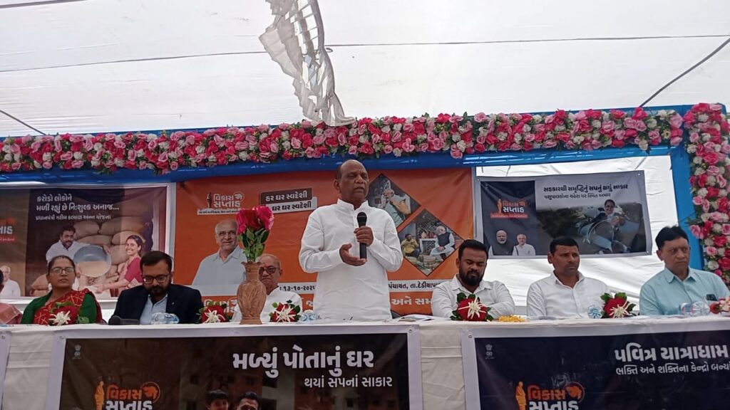 વડાપ્રધાનશ્રી નરેન્દ્રભાઈ મોદીના નેતૃત્વમાં “સેવા, સુશાસન અને જનકલ્યાણના ૨૪ વર્ષ” તરીકે ઉજવાઈ રહેલા વિકાસ સપ્તાહ–૨૦૨૫ અંતર્ગત નર્મદા જિલ્લાની દેડીયાપાડા ગ્રુપ ગ્રામ પંચાયત ખાતે ભરૂચના સાંસદશ્રી મનસુખભાઈ વસાવાની અધ્યક્ષતામાં વિકાસ પર્વની ઉત્સાહભેર ઉજવણી કરવામાં આવી હતી.