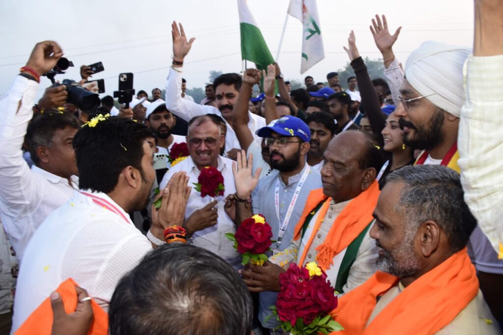 અખંડ ભારતના શિલ્પી તથા ભારતરત્ન સરદાર વલ્લભભાઈ પટેલની ૧૫૦મી જન્મજયંતીની રાષ્ટ્રવ્યાપી ઉજવણીના ભાગરૂપે વડાપ્રધાનશ્રી નરેન્દ્રભાઈ મોદીની પ્રેરણાથી ગુજરાતના મુખ્યમંત્રીશ્રી ભૂપેન્દ્ર પટેલ તથા ત્રિપુરાના મુખ્યમંત્રી શ્રી માનિક સાહા દ્વારા ૨૬મી નવેમ્બરે સરદાર સાહેબની જન્મભૂમિ કરમસદથી ફ્લેગ-ઓફ કરાવેલી ભવ્ય ‘સરદાર@૧૫૦ – રાષ્ટ્રીય યુનિટી માર્ચ’ આજરોજ નર્મદા જિલ્લામાં પ્રવેશી હતી.પોઈચામાં રાષ્ટ્રીય પદયાત્રાનું હાથોમાં તિરંગા, ચહેરાઓ પર હર્ષભેર સ્મિત સાથે પ્રચંડ જનમેદની, રંગબેરંગી ફૂલોની વર્ષા, દેશભક્તિના ગીતો, ઢોલ-નગારાંની ધ્વનિ, તીર-કામઠા સાથે પરંપરાગત વેશભૂષામાં આદિવાસી સંસ્કૃતિને પ્રતિબિબિંત કરતા લોકનૃત્યોના પ્રસ્તુતી વચ્ચે રાષ્ટ્રીય એકતા, અખંડિતતા અને રાષ્ટ્રપ્રેમનો સંદેશો લઈને આગળ વધી રહેલી ભવ્ય ‘રાષ્ટ્રીય યુનિટી માર્ચ’નું પોઈચા ખાતે ઐતિહાસિક અને ઉષ્માસભર ભવ્ય સ્વાગત કરાયું હતું. આ રાષ્ટ્રીય યુનિટી માર્ચનું નર્મદા નદી પર પોઇચા ગામ પાસે ડભોઇ-સેગવા-રાજપીપળા રોડ પર આવેલા રંગ સેતુ પૂલ પરથી પસાર થઈને પોઇચા ખાતે આગમન થતાં સાંસદ સર્વશ્રી મનસુખભાઇ વસાવા અને જશુભાઈ રાઠવા, જિલ્લાના અગ્રણીશ્રી નીલભાઈ રાવ અને વિક્રમભાઈ તડવી સહિત જનપ્રતિનિધિઓ, જિલ્લા વિકાસ અધિકારીશ્રી આર. વી. વાળા અધિકારીઓ, સ્થાનિક રહીશો ઐતિહાસિક ક્ષણના સાક્ષી બન્યાં હતા. નોંધનીય છે કે, વડાપ્રધાનશ્રી નરેન્દ્રભાઈ મોદીની પ્રેરણાથી દેશભરમાં સરદાર સાહેબની ૧૫૦મી જન્મજયંતીની ઉજવણી ભવ્ય રીતે ઉજવાઈ રહી છે, ત્યારે સરદારની જન્મભૂમિ કરમસદથી પ્રારંભયેલી આ પદયાત્રા તથા પદયાત્રીકોનું પ્રચંડ જનમેદનીએ ઠેર ઠેર ભવ્ય સ્વાગત કરીને દેશની એકતા અને અખંડિતતાનો પ્રેરક સંદેશ પાઠવ્યો હતો. આ પદયાત્રા આવતીકાલે ૪ ડિસેમ્બર, ૨૦૨૫ સવારે ૮:૩૦ કલાકે પોઈચાથી પ્રસ્થાન કરી નરખડી, જેસલપોર, બીડ, રસેલા, ભદામ થઈને તબક્કા વાર આગળ વધશે. પ્રચંડ જનમેદનીના અદમ્ય ઉત્સાહ અને જય સરદારના ગગનભેદી ગુંજારવ સાથે આ રાષ્ટ્રીય પદયાત્રા સરદાર પટેલની વિશ્વની સૌથી ઊંચી પ્રતિમા એટલે કે સ્ટેચ્યુ ઓફ યુનિટી એકતાનગર ખાતે તા. ૦૬ ડિસેમ્બરે પહોંચશે.આ તકે, આસપાસના ગામોના સરપંચો, આગેવાનો, શાળાના વિદ્યાર્થીઓ તથા સ્થાનિક નાગરિકો દ્વારા રાષ્ટ્રીય પદયાત્રાનું અત્યંત ભવ્ય અને ઉત્સાહપૂર્ણ સ્વાગત કરવામાં આવ્યું હતું.